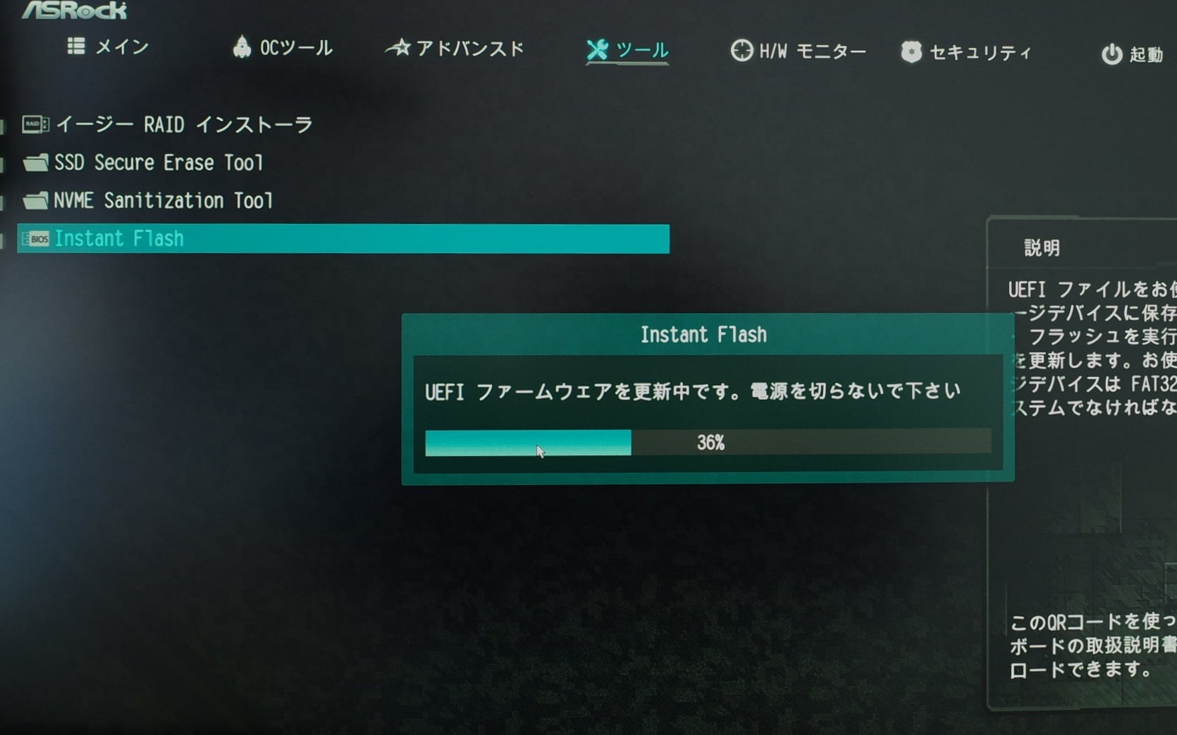 と言うことで、ASRockのサイトから最新版BIOSをダウンロード、アップグレードする。